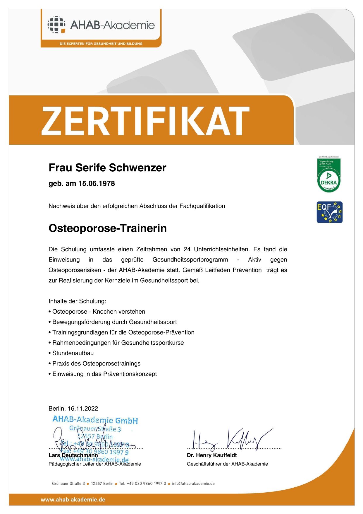 Aktiv und präventiv gegen Osteoporose (Kraft) §20